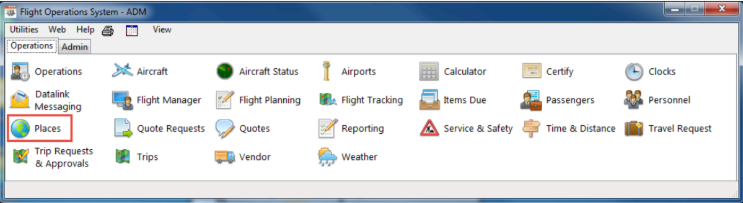 To access under the Places Module select the Operations Tab and then the Places button: