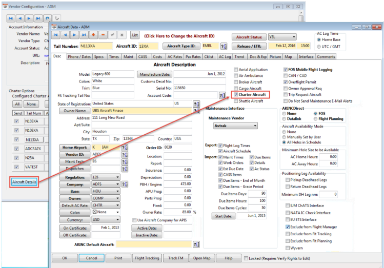 When the FOS Vendor Alliance is used for an aircraft maintenance interface, the Maintenance Interface section in the Aircraft Record will display the selection from the Vendor Alliance module. The “Import” options in the aircraft record are hidden. ...