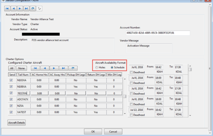 The customer can choose to send “holes” in the schedule or the full aircraft “schedule."