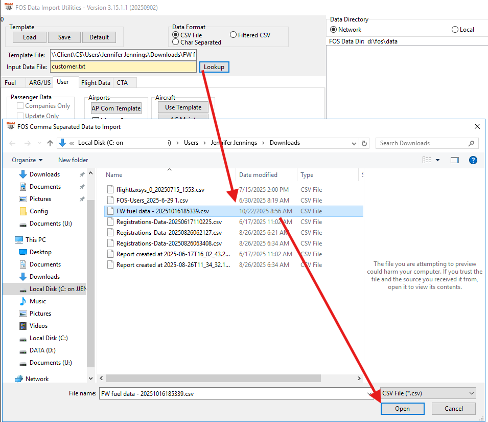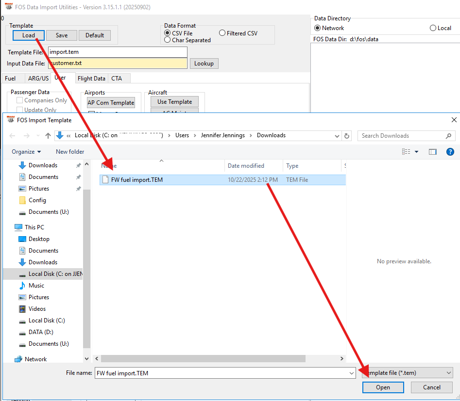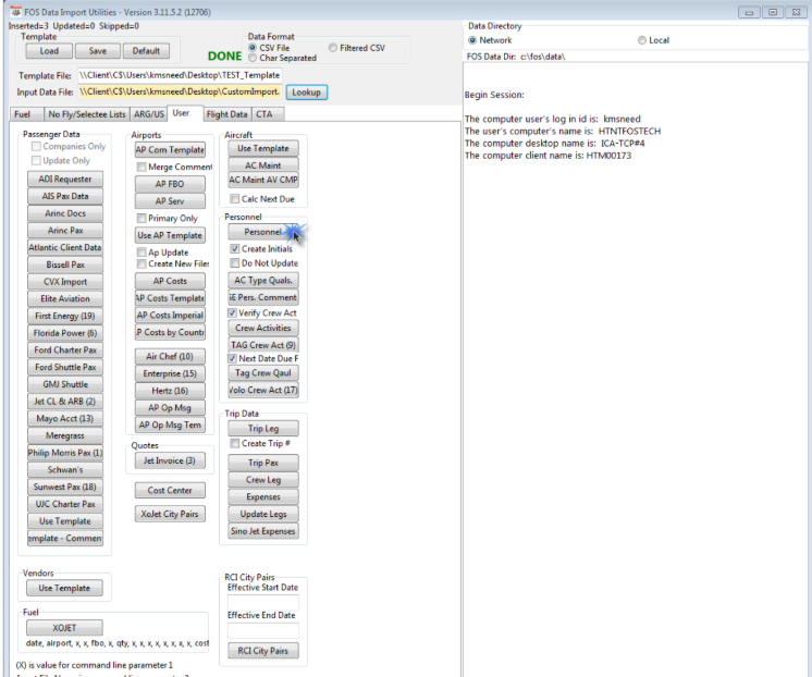 The below steps are the process to load the data. In these screen shots, I am importing fuel for a vendor that does not have a hot button. The same steps can be followed for passengers, personnel, costs.