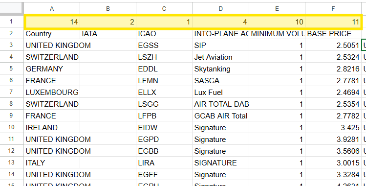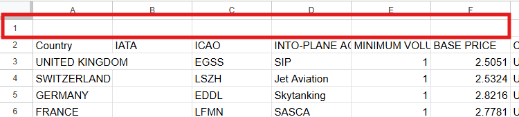 1. Take the data file you have, create a new row at the top, above the row headers already on the sheet.