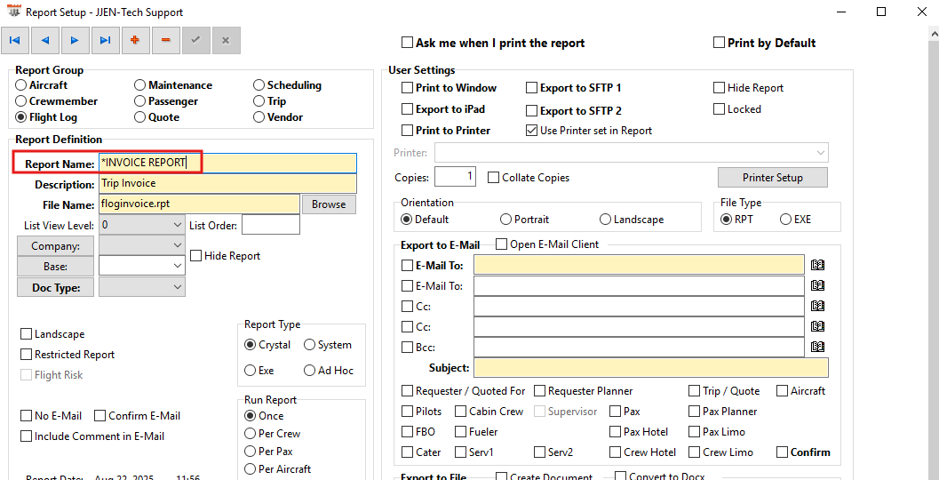 Within the Report Name field, remove any special characters. If you are using characters to bring your report to the top of the selection list, please use numbers instead.