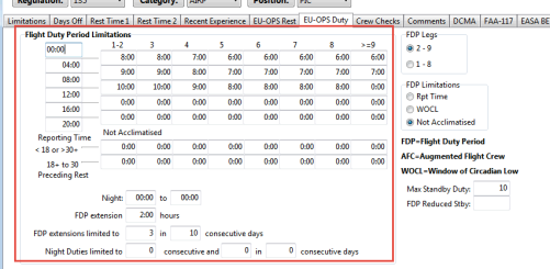 The user will also have fields to specify the window of circadian low and by percentage, how much the duty period is to be reduced when encroaching upon the WOCL. Extensions are also covered within this window.