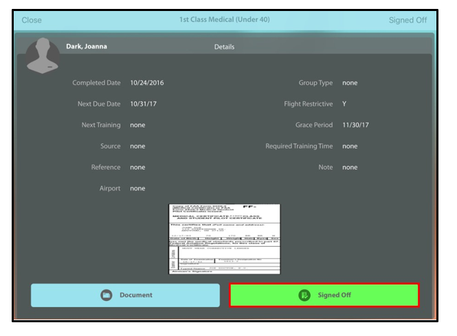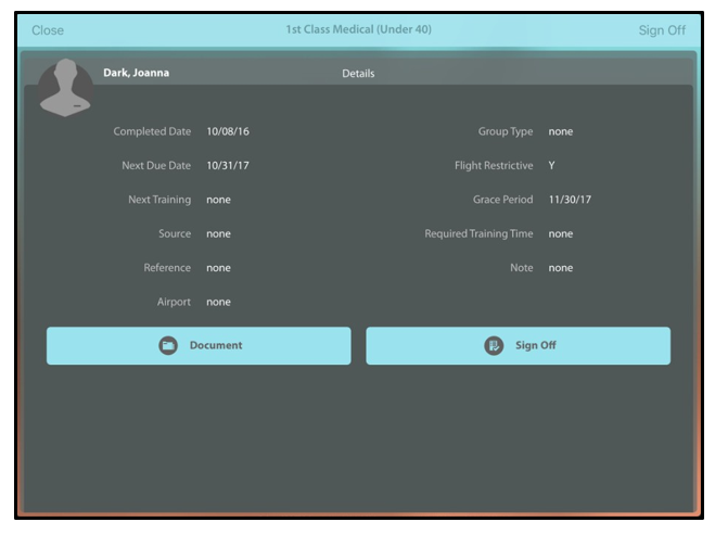 • Displays the Flight Manager login for the user that is currently signed into the application