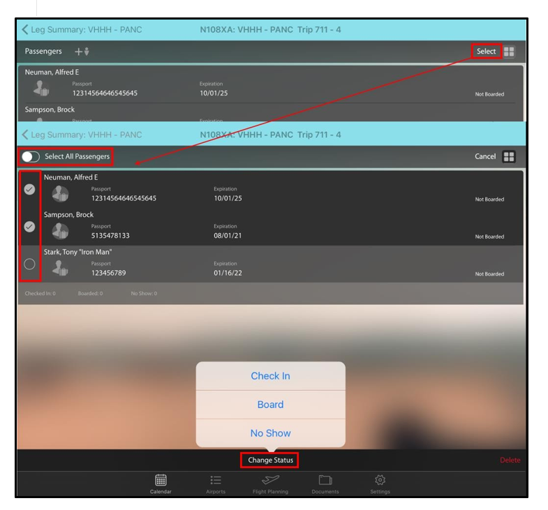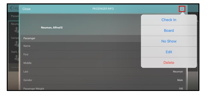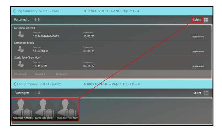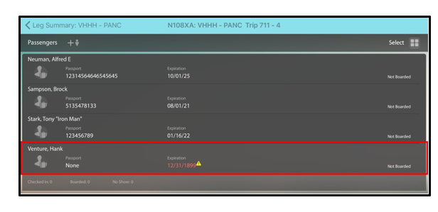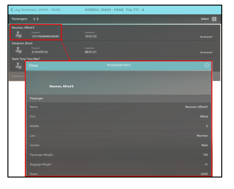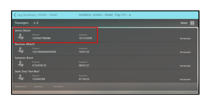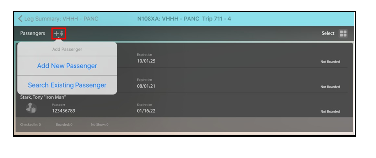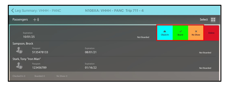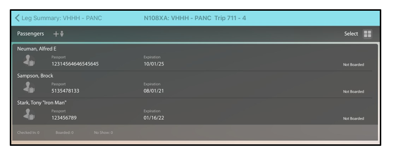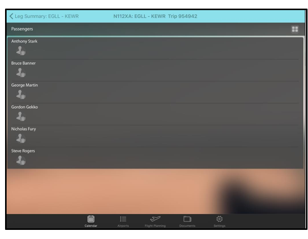 • To view the passengers assigned to the leg, select the “Passengers” option.