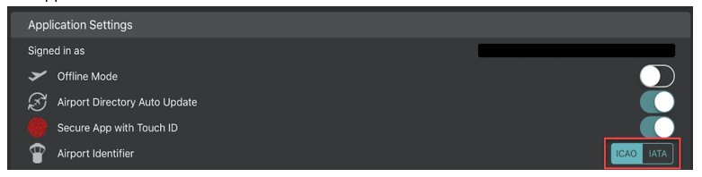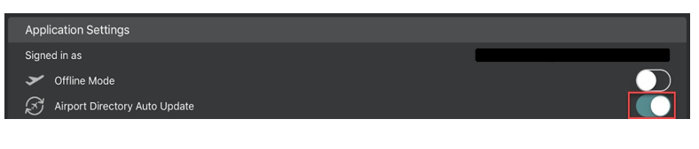 • If enabled, the app will automatically update the airport directory. If left disabled, the user would have to manually update the in-app directory when the solid red circle is seen at the bottom carousel next to the Airports icon.