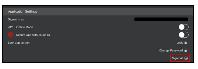 • For security purposes, signing out of the application will delete all stored data inside of the application. When signing out of the application, an internet or cellular connection is required to sign in again.