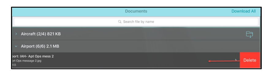 • Documents that have been downloaded onto the device may be removed by selecting and holding the document and sliding to the left. Once the document has been removed the cloud icon will appear indicating that it may be downloaded again.