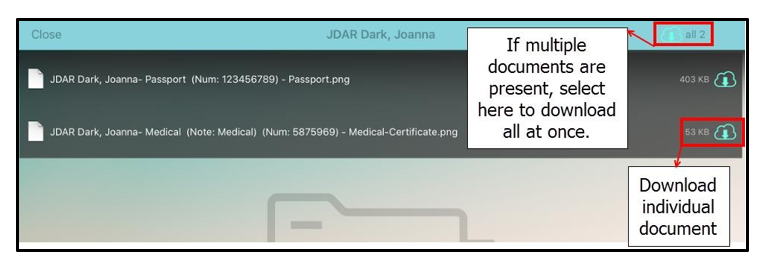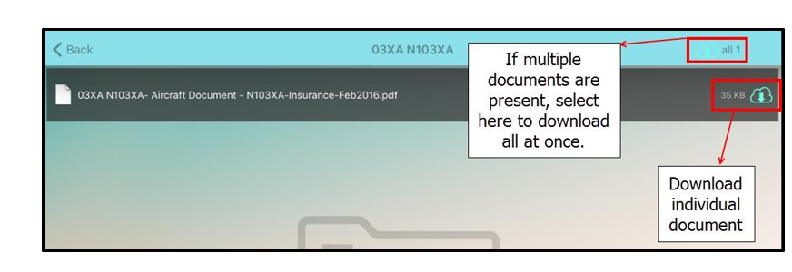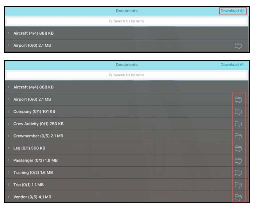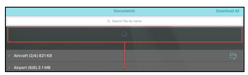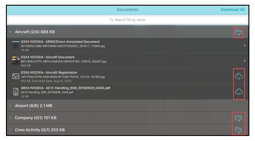 • Documents that have not yet been downloaded to the device will indicate a cloud icon and sections that have documents available for download will indicate a file icon.