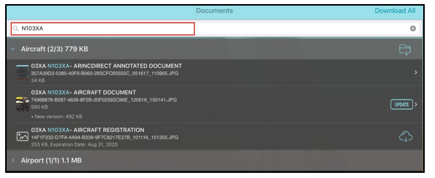 • Populating the search field will filter the list to only show those documents meeting the search requirements.