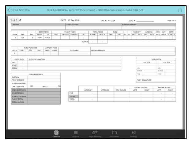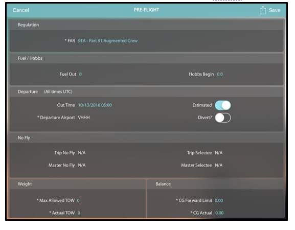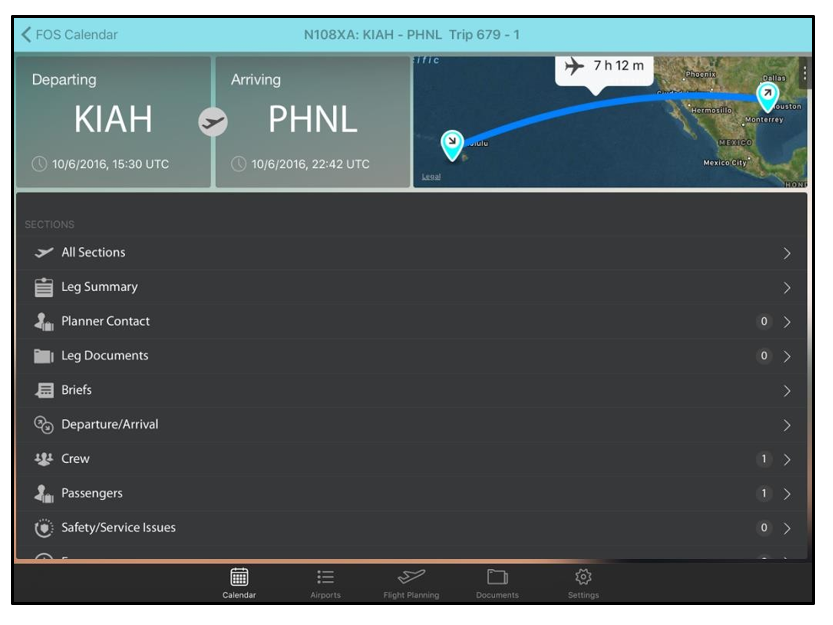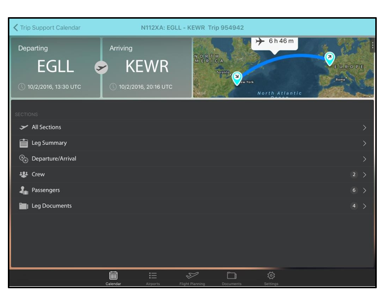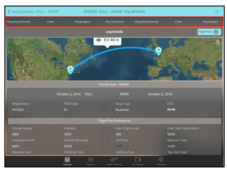 o Departure / Arrival o Crew o Passengers o Leg Documents