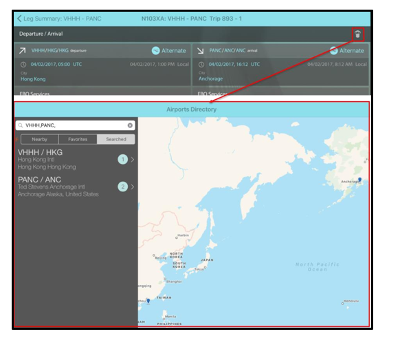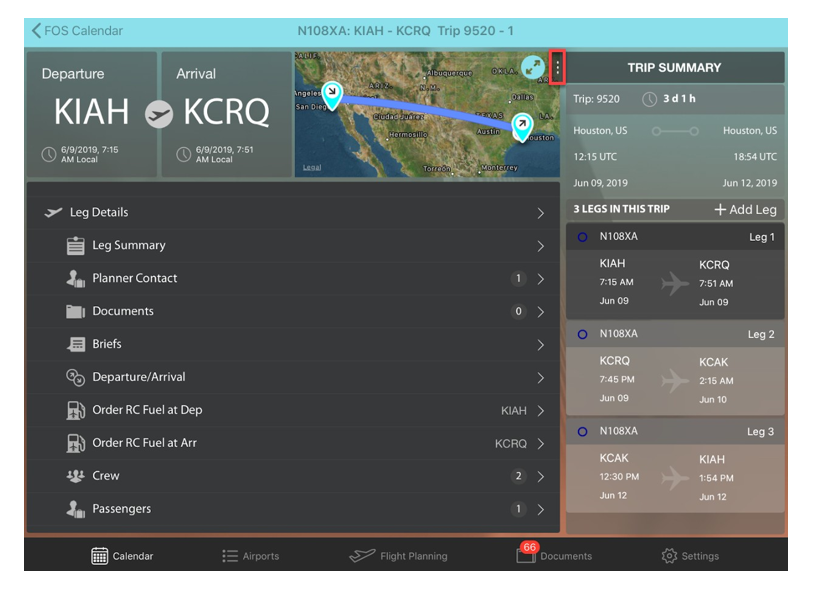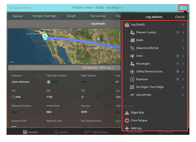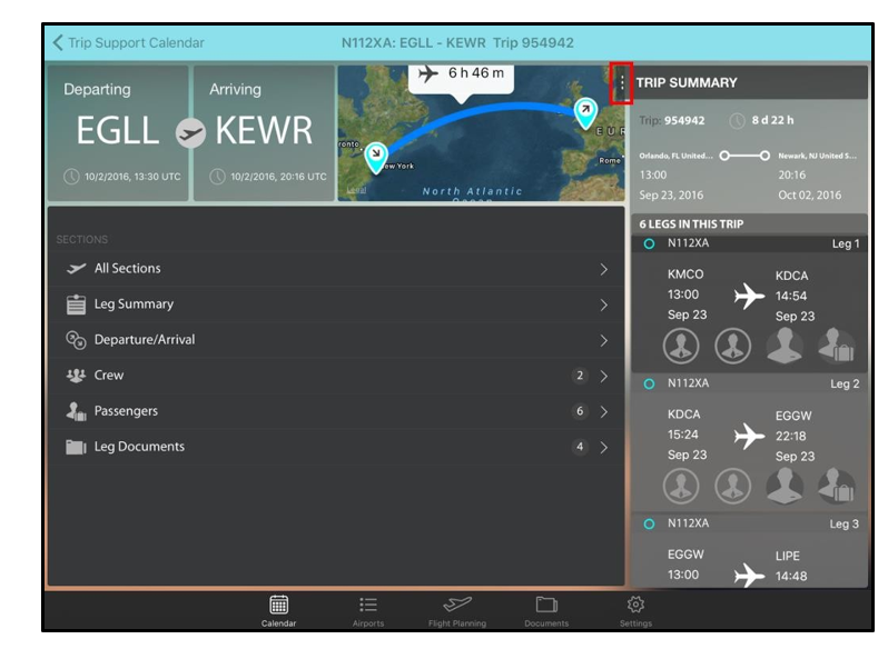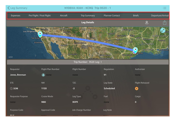 • - In any portion of the leg, users may select the “expand” button located at the top right of the screen to pull out another menu that will display the Trip Summary.