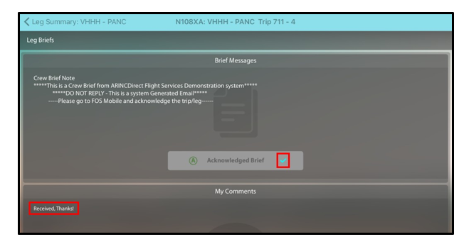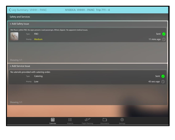 • When opening a flight leg, the very basic details of the flight leg will display in the “Notes” section. This includes the Trip & Leg Number, Departure Airport, Departure Time in UTC, Arrival Airport, Arrival Time in UTC, Crew Count and Pax Count. Select “Show All Notes” to view all of this information.