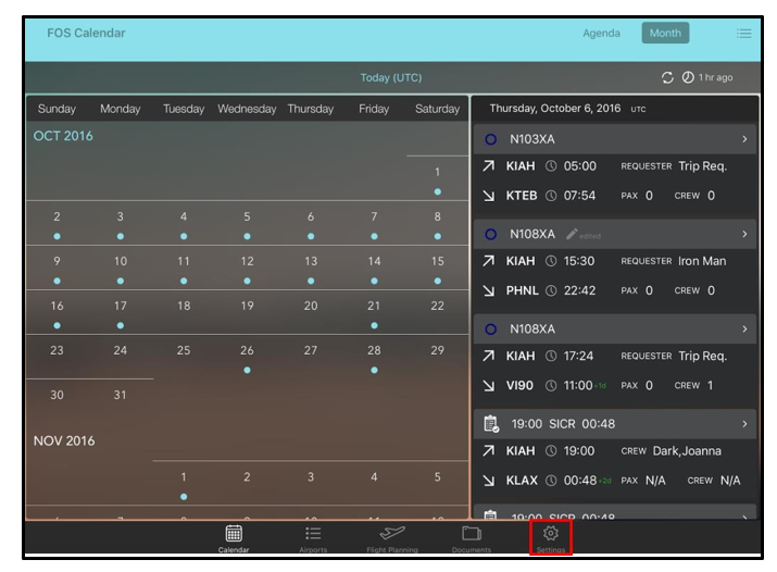 • If the user does not have a FOS Subscription, or FOS Mobile subscription, the user may use this application for the Trip Support Calendar. In this case, the FOS settings page may remain blank.