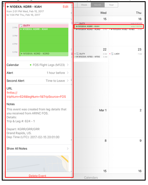 (Example of flight leg from PORTSIDE FOS application when opened in iCal:)
