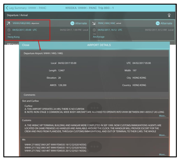 o Departure & Arrival Airport Details If an Alternate Airport or ETPs/ETOPs are loaded, select the “Alternate” button to view the details.