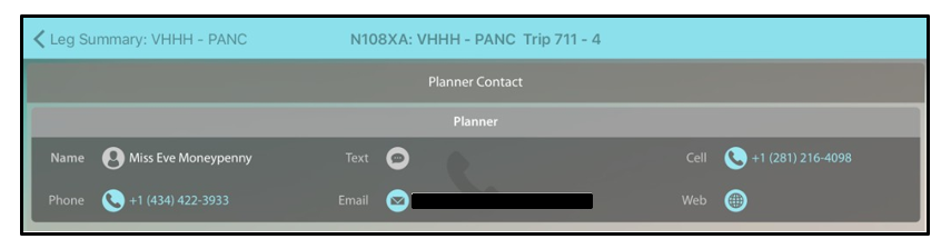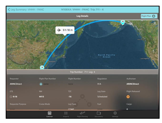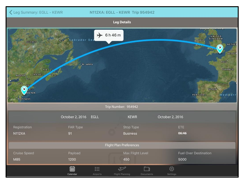 o Also, if applicable, this section will also display the Flight Plan Preferences for the selected leg that are loaded in the system by the Trip Support Team.