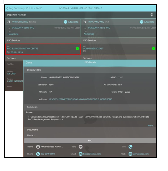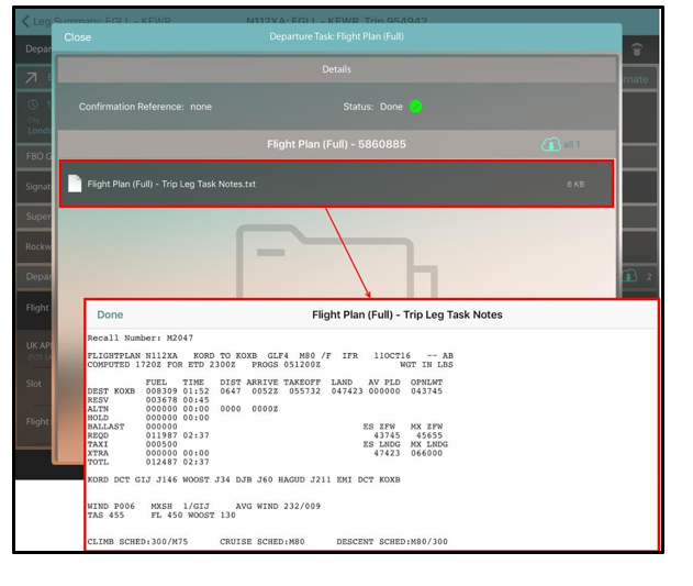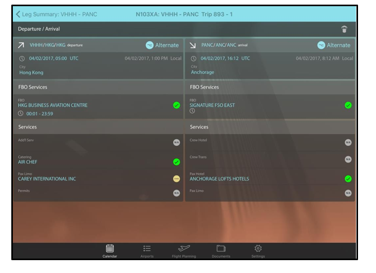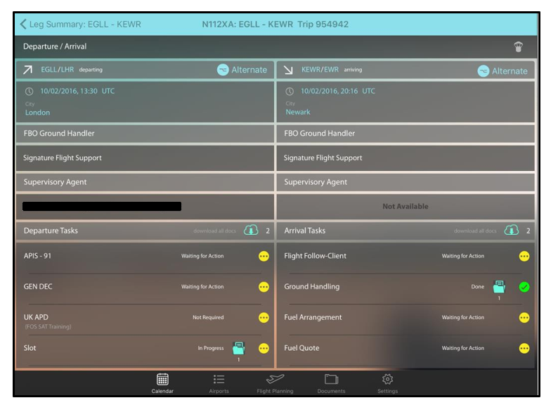 o Departure & Arrival Tasks – The status and documents associated with the departure and arrival tasks can be viewed on this screen.