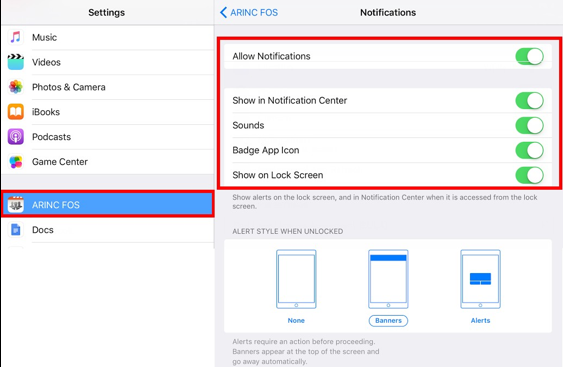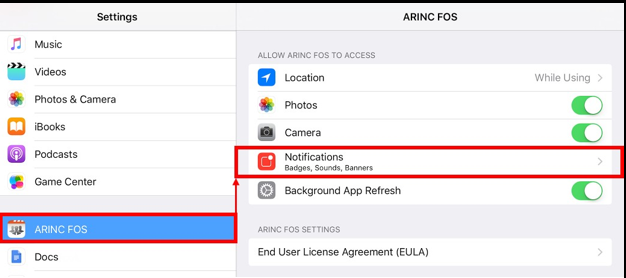 Within the General Settings on your device, select “PORTSIDE FOS” “Notifications.”