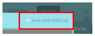 After filling out the appropriate fields, select “+Save and Add Leg” at the top of the screen.