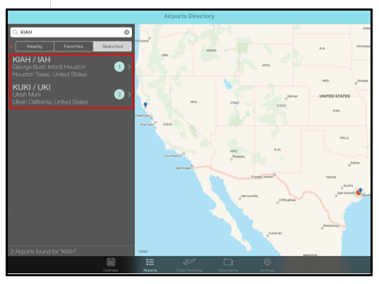 • To search an airport, enter in a name, code, city or state into the top left search field. The results will display below and the map on the right will display the matches.