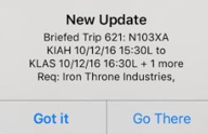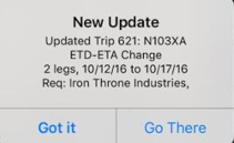 When active inside the app, select “Got it” to close the notification, or “Go There” to open the leg.