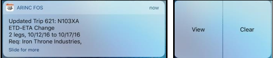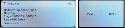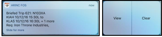 When not active inside the app, slide to left to see the “View” or “Clear” options. Selecting View, will take you into the leg and selecting Clear will clear the notification.