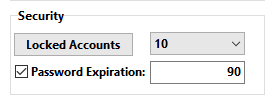 Password Expiration - Designate when a user's password will expire, you can set the date range between 30 to 90. You can also turn the password reset requirement off all together by de-selecting the checkbox on the left.