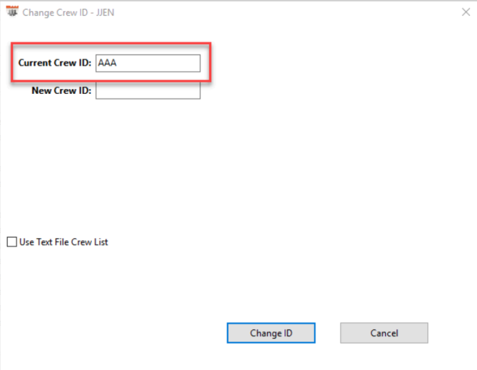 3. The current crew ID will populate in the Current CREW ID field and the desired ID should be entered in the New CREW ID field: