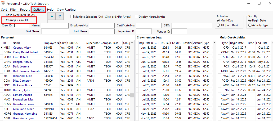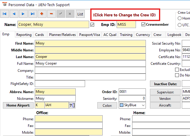 *Only attempt to change the Crew ID when using one of these two functions. If the Crew ID is changed outside this window, all records will be disassociated with the crewmember.