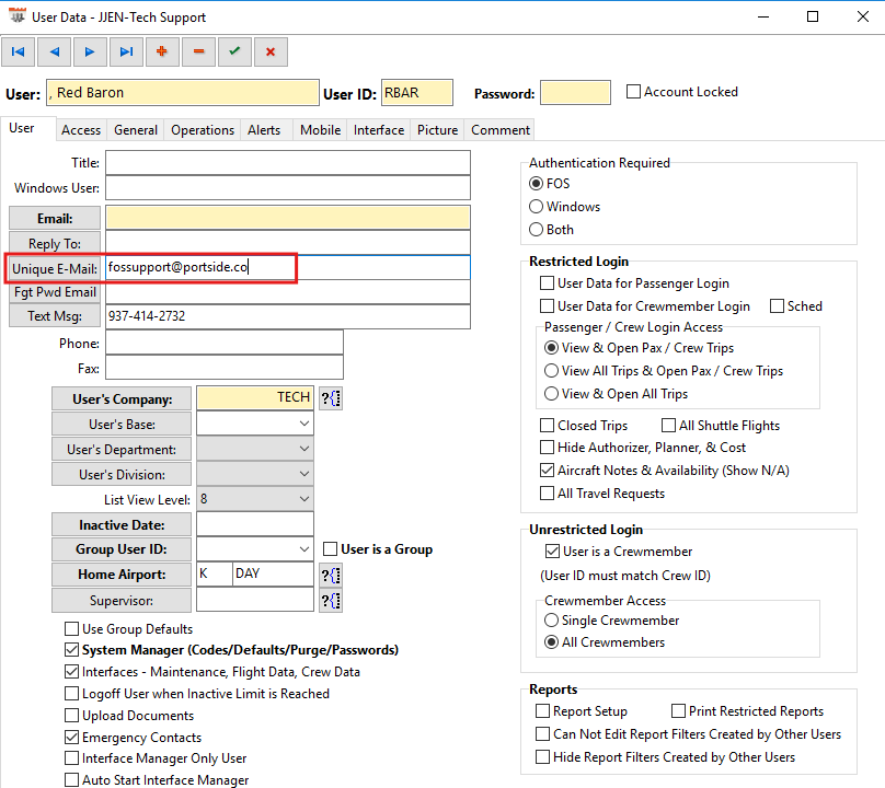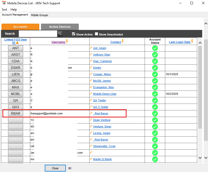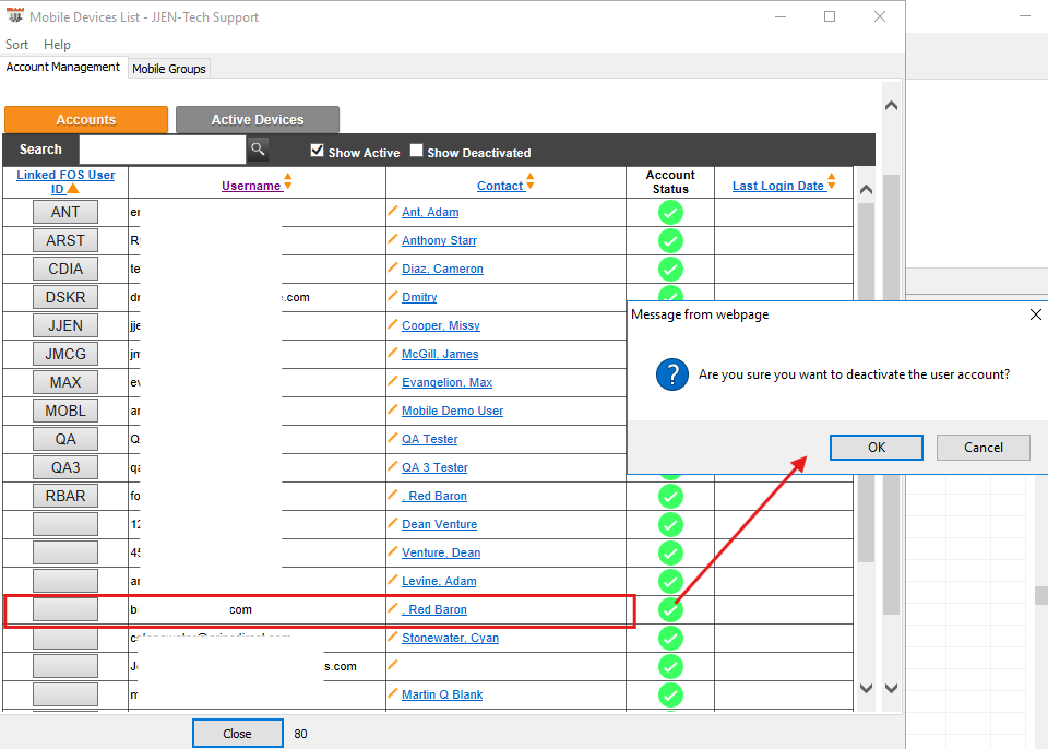 The Mobile & Web Management Module can be accessed from the Admin Tab of FOS. The Account Management will list all of the Flight Manager accounts associated with the company. If the Flight Manager login is linked with a FOS ID, it will display this ...