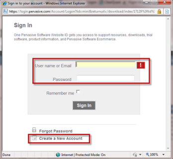 3. Once you select the appropriate installer it will ask you to login or create an account. This is how pervasive monitors the downloads. If you already have an account, login. If not, create an account.