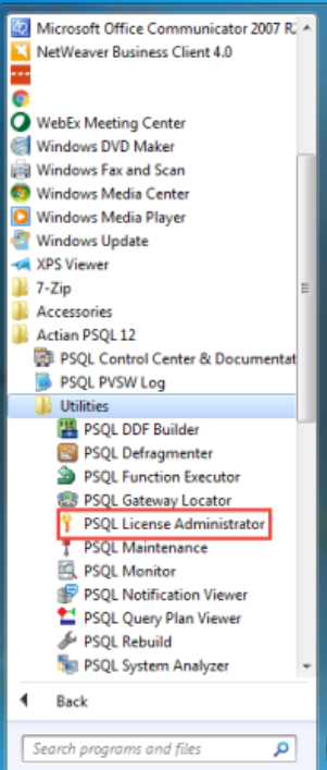 1. On the server, open the Start Menu --> Pervasive --> License Administrator
