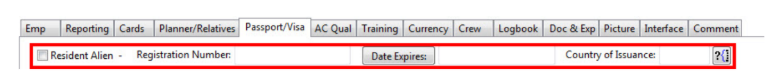 The Passport/Visa tab allows users to track and enter Passport and Visa details for the Personnel Record. The Passport Information is used when filing APIS and will be pulled from the Personnel Record into the trip when the crew member is assigned. ...