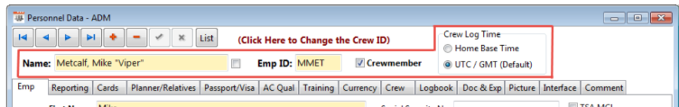 Click Here to Change the Crew ID - Please note- the only time the ID may be changed is by using the Click Here to Change the Crew ID option at the top of the header. Do not change the ID otherwise. This option may be grayed out if your User profile does not have the proper permissions. The full details on properly changing the Crew ID are located