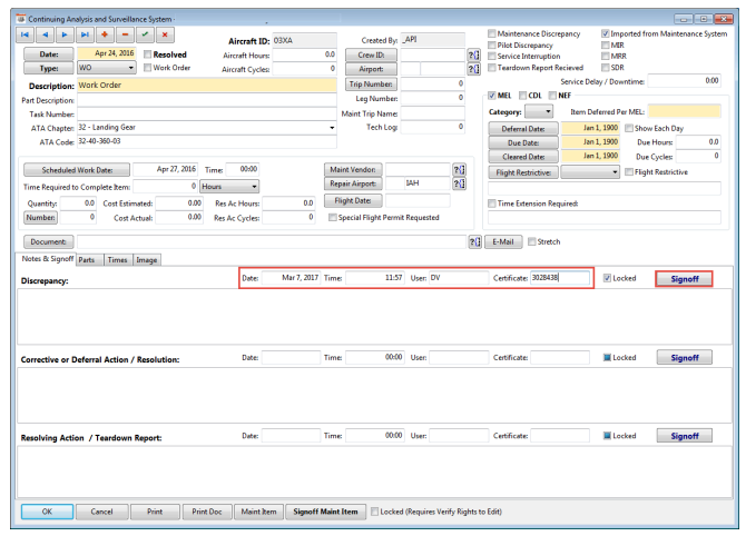 The section was originally created to allow information on squawks, MEL’s, part replacement, etc. The data is entered and then reported to the FAA for operator bound by the requirements of the Continuing Analysis and Surveillance System. This may ...