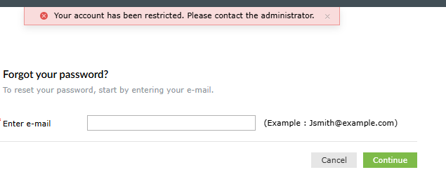 If the user receives the below error when trying reset their Citrix password via the self-service password reset (or Forgot Password link) on the go.portside.aero site, the account needs to be re-enabled. This signals the account was placed into a restricted state due to months of non-use.